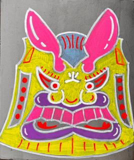 屋根用ののし瓦をキャンバスに、お好きなイラスト、絵を描く体験です。